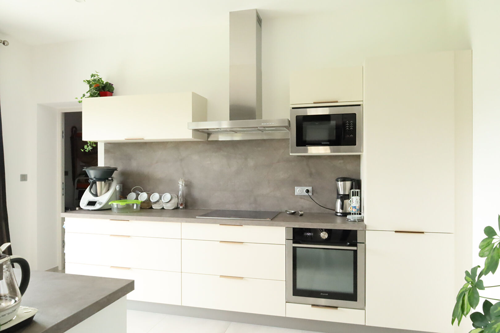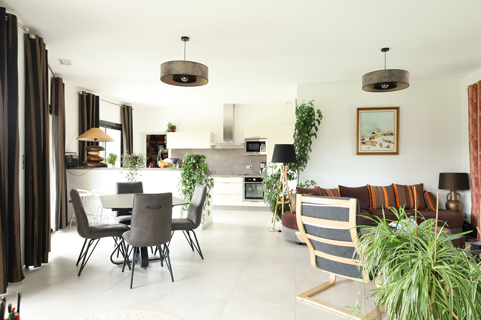 Elle se compose d’une vaste pièce de vie de 50 m² avec cuisine américaine moderne, cellier et buanderie.