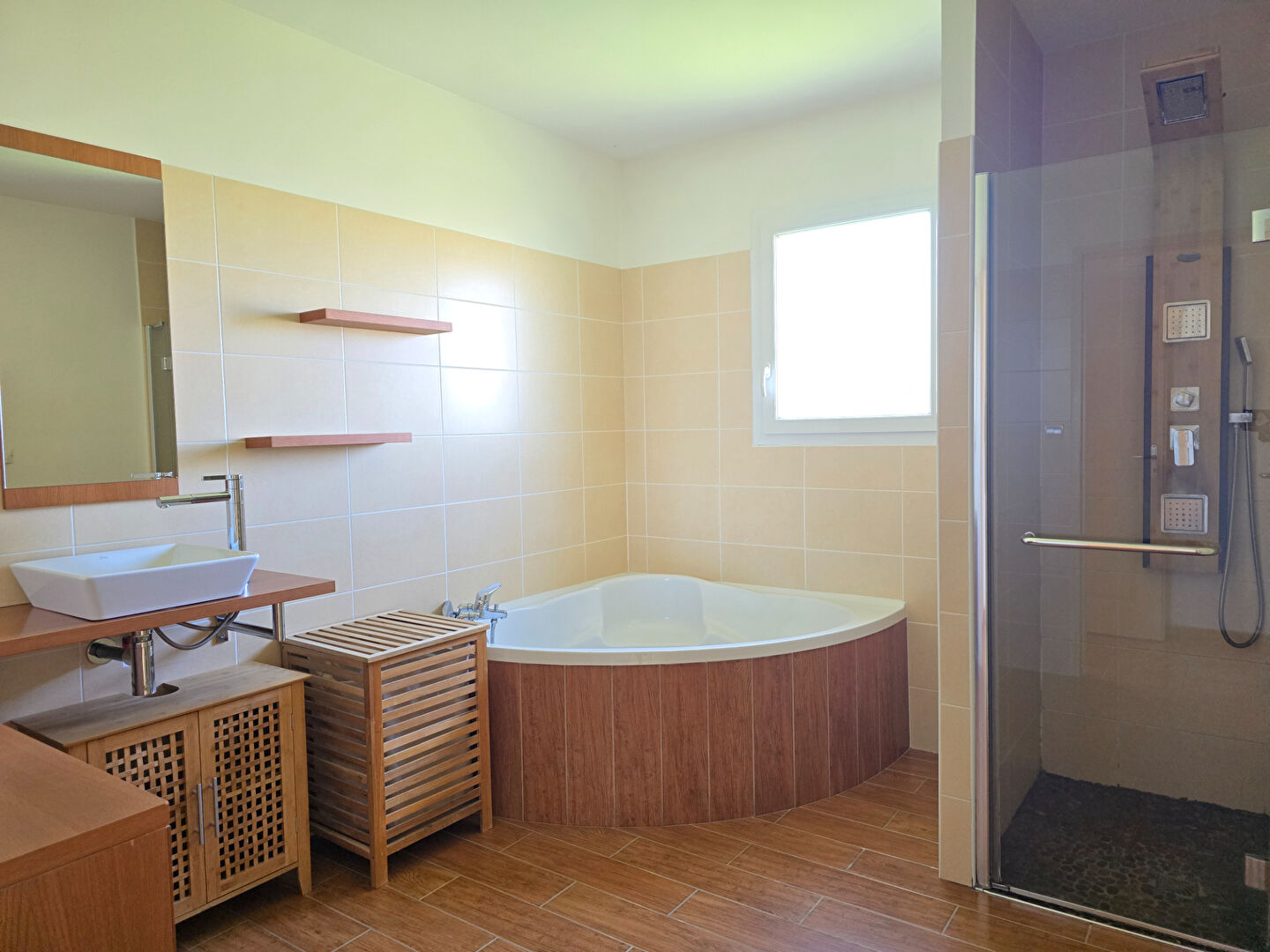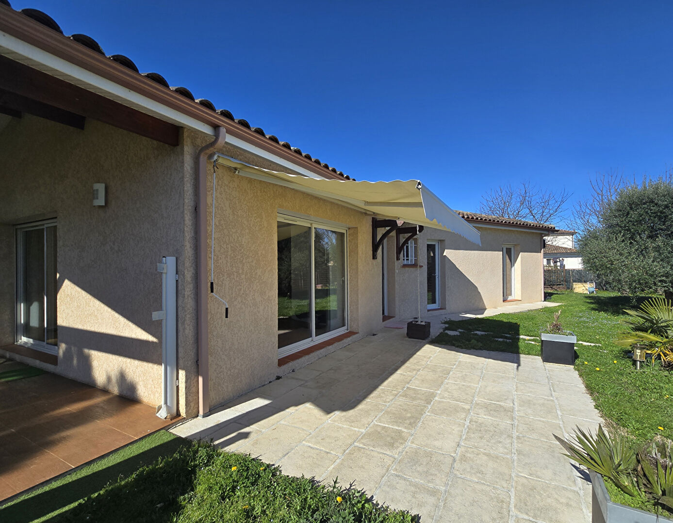 Maison plain-pied de 113m² habitables. Pièce de vie donnant sur le jardin et 2 terrasses couvertes. Cuisine équipée avec cellier. 3 chambres avec placards et 1 bureau. Salle de bains avec douche italienne et baignoire. Garage et carport. Jardin clôturé avec piscine et puits. Chauffage réversible par air pulsé. Portail électrique. Aucun travaux à prévoir. Maison basse consommation. Rocades à 5 minutes et à 8 minutes de Montauban. (6.10 % honoraires TTC à la charge de l’acquéreur.)